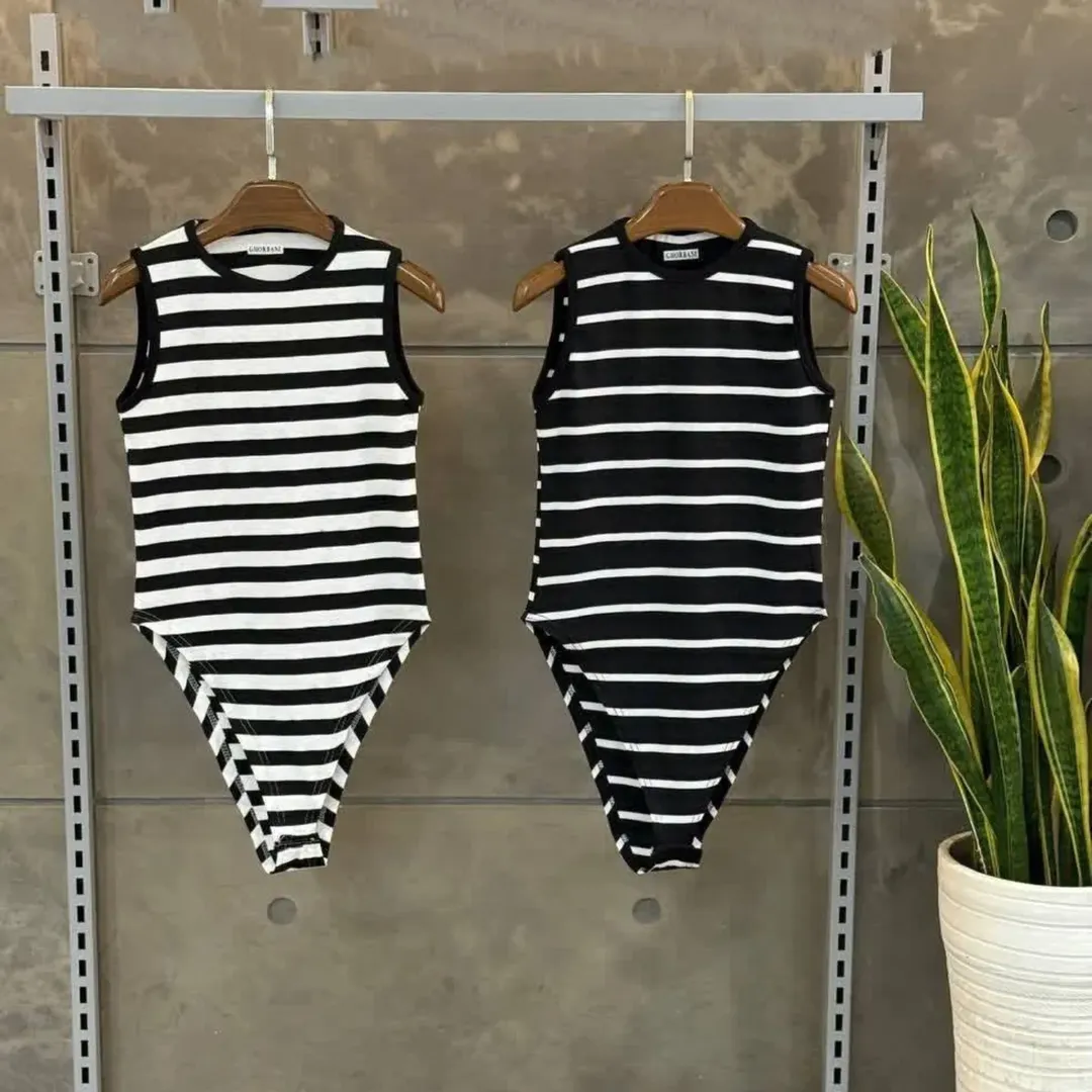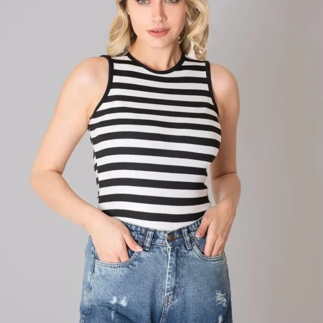 بادی زنانه رسیید ترندای جدید اینستگرام راه راه مشکی و سفید جنس :فانریپ